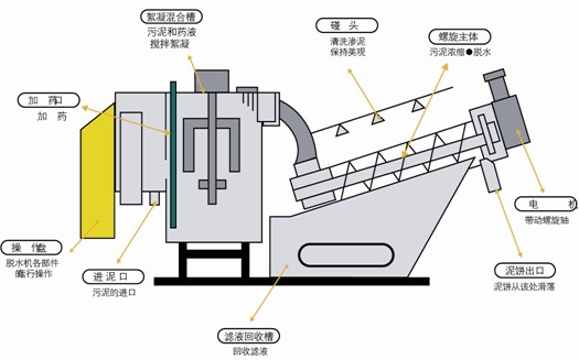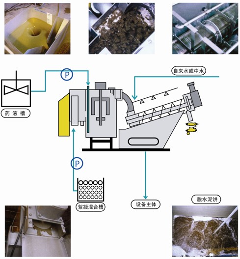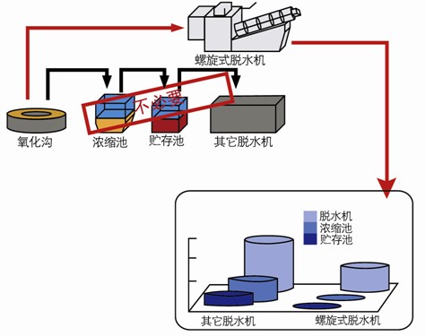 螺旋式污泥脫水機采用的特殊構造使其可直接處理污泥濃度(2000mg/L~35000mg/L)的活性污泥。因而可直接對曝氣池污泥或是沉淀池底部污泥進行脫水操作,不僅可節(jié)約污泥濃縮池和污泥儲存池的占地,還可減輕由于污泥儲存時發(fā)生的磷釋放和厭氧臭味,并為改進污水處理工藝提供了新思路。