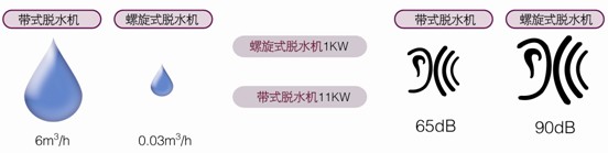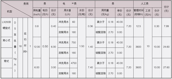 在處理量相同的前提下,螺旋式運行成本為7.99元/h,離心式為24.6元/h,帶式為27.6元/h,相對而言,螺旋式運行成本為離心式的1/3,是帶式的1/4左右,若以一天8小時工作時間,工作一個月計算著得出: