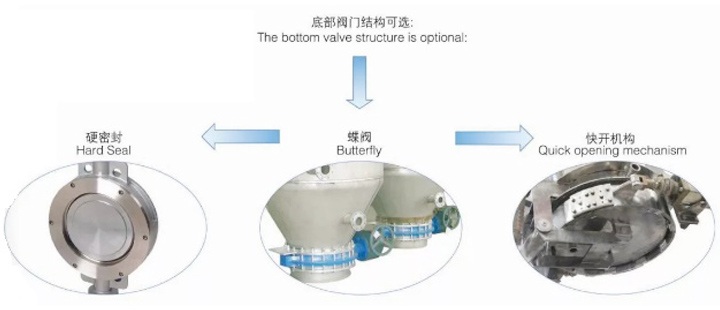 濾餅吹干后,啟動(dòng)振動(dòng)器,濾葉片上的濾餅通過(guò)底部蝶閥自動(dòng)落下。如果濾餅吹干過(guò)程操作的很好,開(kāi)啟振動(dòng)器10S內(nèi)即可落下全部濾餅。在過(guò)濾機(jī)底部安裝一個(gè)絞龍,有利于輸送濾餅。