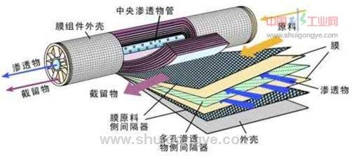 4、反滲透(RO):過濾精度在0.0001微米左右,是美國60年代初研制的一種超高精度的利用壓差的膜法分離技術。可濾除水中的幾乎一切雜質(包括有害的有益的),只能允許水分子通過。一般用于飲用純凈水、工業超純水、醫藥超純水的制造。反滲透技術需要加壓、加電,水的利用率低。